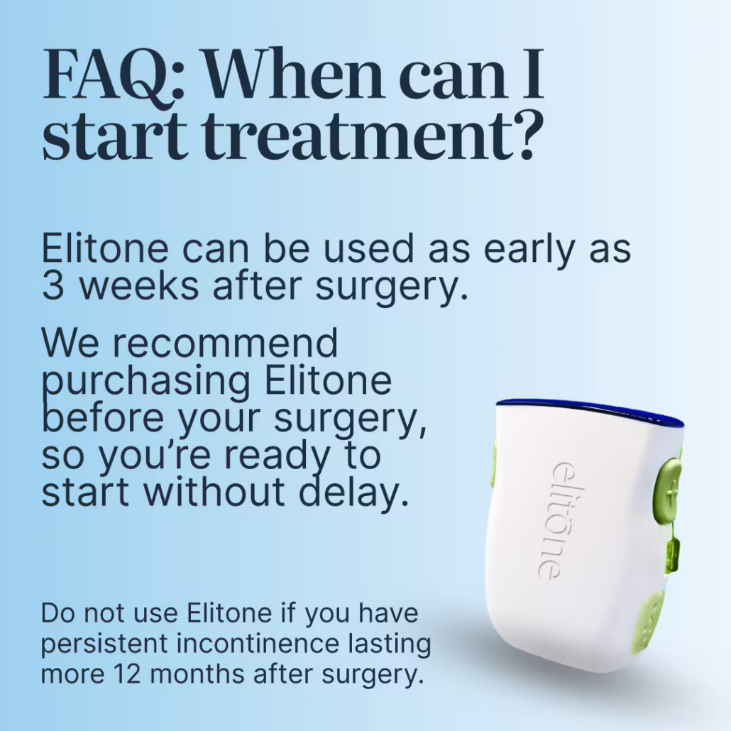 Treating with Elitone for Men has been shown to speed recovery.[1] It is the only FDA-cleared device indicated to aid early continence recovery.