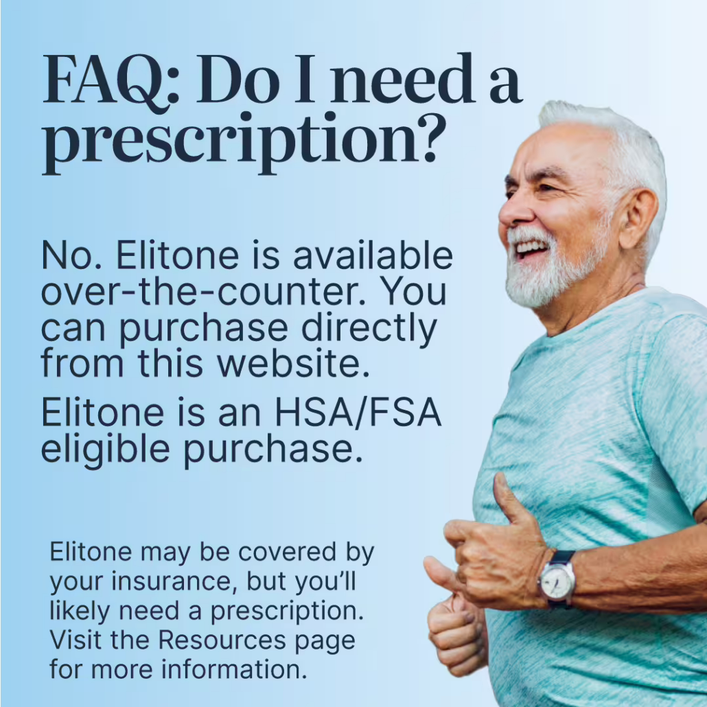Elitone for Men speeds recovery following prostate surgery. It’s FDA-cleared for over-the-counter use, no prescription required. Elitone for Men tones your pelvic floor muscles and is proven to reduce leaks in just 6 weeks.
