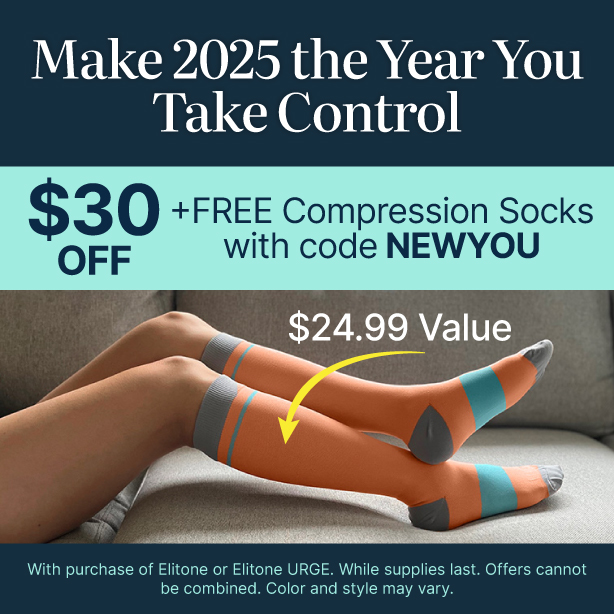 Elitone treats stress urinary incontinence at home, discreetly and comfortably. It is FDA-cleared for over-the-counter use by women, no prescription required. Elitone tones your pelvic floor muscles and is proven to reduce leaks after just 6 weeks. Soon you’ll be able to wear the gray leggings, run the extra mile, laugh and leave your leaks behind without worry.